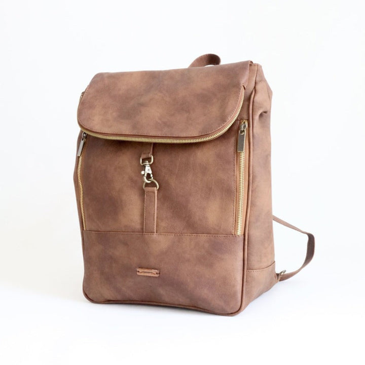 Bolso rectangular, amplio, bolsillo frontal con cierres verticales, tapa con cierre y broche de mosquetón decorativos, cierre de cremallera en su entrada principal cierre auxiliar interior, dos cargaderas para llevar sobre la espalda, cabe un computador portátil de hasta 16 pulgadas